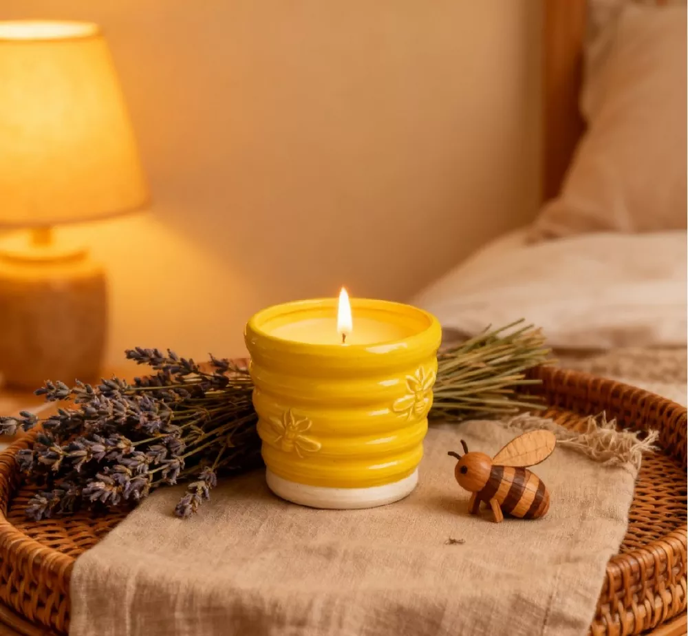 • Borcan de lumânări din ceramică cu ceară de albineBorcan de lumânări din ceramică cu ceară de albine