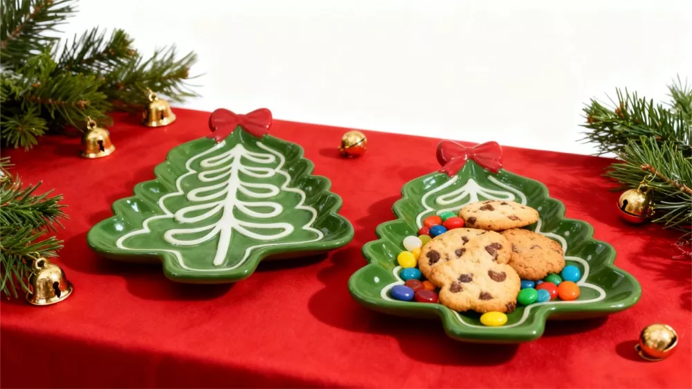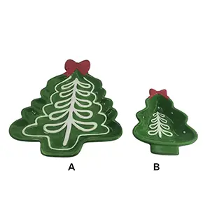 Farfuria pentru brad de Crăciun Cadou de sărbători pictată manual include două versiuni: Versiunea A (mare) este potrivită pentru servirea felurilor principale și deserturilor, în timp ce Versiunea B (mică) este perfectă pentru decorarea delicată a mâncărurilor mici, satisfacând diverse nevoi de masă. Blatul este decorat cu o stea aurie sau o fundita rosie, asociata cu modele pictate manual, prezentand spiritul festiv in fiecare detaliu. Acest set de veselă rafinat și practic este cu siguranță cea mai bună alegere pentru masa ta de Crăciun!